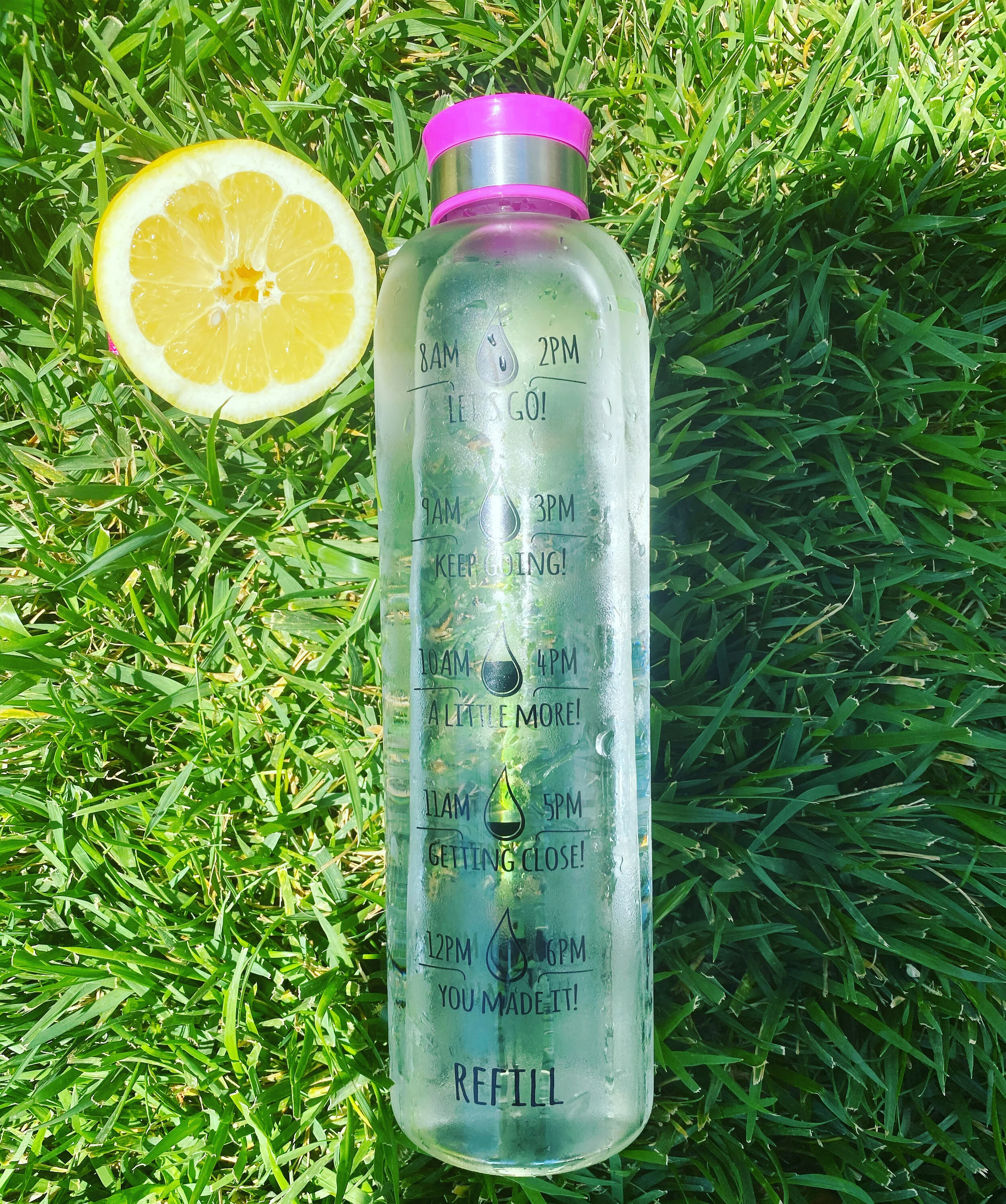 Let’s aim for 8 glasses (of room temperature water) daily. Using a bottle with markers on it (like the one picture above) can help you to hit your daily goal. If you’re not a water drinker, or are having trouble meeting your daily goal, below are some other sources that can count towards your daily H20: